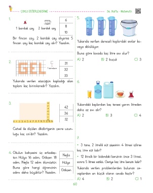fincan çay kaç bardak çay alır? Yazalım. Yukarıda verilen dereceli kaplardaki sıvılar ko-