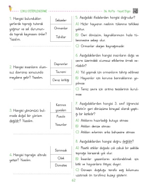 da toprak kaymasını önler? B) Geri dönüşüm, kaynaklarımızın hızla tü-