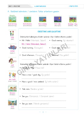 UNIT 1: GREETING 3. SINIF İNGİLİZCE 1. ÜNİTE FÖYÜ