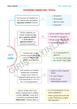 adjective (sıfat)?" soru Is he strong? (O güçlü mü?)