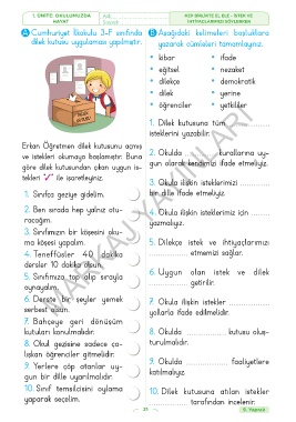 dilek kutusu uygulaması yapılmıştır. yazarak cümleleri tamamlayınız.