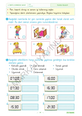 B Aşağıdaki etkinliklerin hangi saatlerde yapılması gerektiğini boş bırakılan