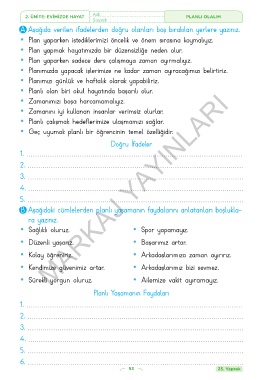 B Aşağıdaki cümlelerden planlı yaşamanın faydalarını anlatanları boşlukla-