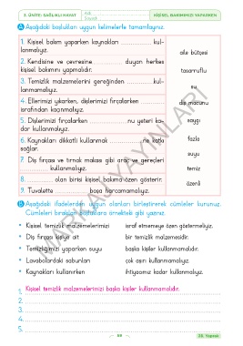 3. ÜNİTE: SAĞLIKLI HAYAT Adı : KİŞİSEL BAKIMIMIZI YAPARKEN