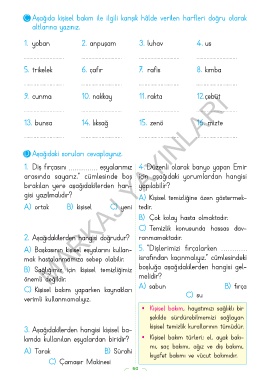 C Aşağıda kişisel bakım ile ilgili karışık hâlde verilen harfleri doğru olarak
