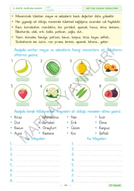 A Aşağıda verilen meyve ve sebzelerin hangi mevsimlere ait olduklarını