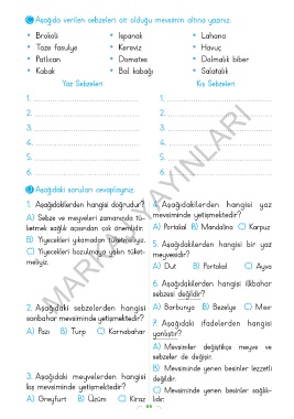 C Aşağıda verilen sebzeleri ait olduğu mevsimin altına yazınız.