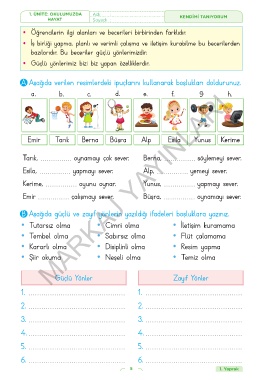1. ÜNİTE: OKULUMUZDA Adı : KENDİMİ TANIYORUM