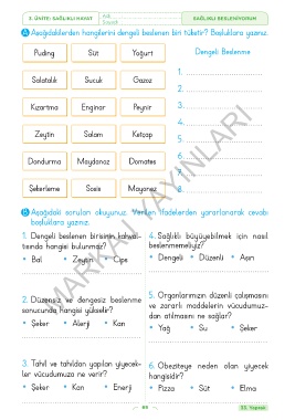 3. ÜNİTE: SAĞLIKLI HAYAT Adı : SAĞLIKLI BESLENİYORUM