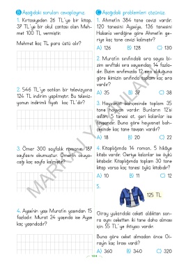 1. Kırtasiyeden 26 TL ’ ye bir kitap, 1. Ahmet’in 384 tane cevizi vardır.