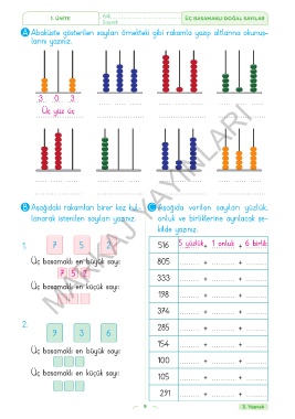 1. ÜNİTE Adı : ÜÇ BASAMAKLI DOĞAL SAYILAR