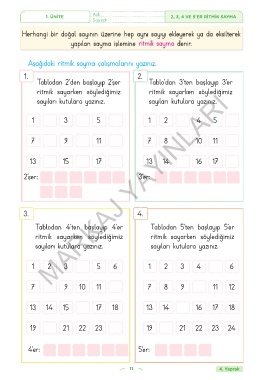 1. ÜNİTE Adı : 2, 3, 4 VE 5’ER RİTMİK SAYMA