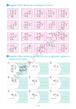 D Aşağıdaki bölme işlemlerini yapınız. Daha sonra sağlamasını yaparak iş-