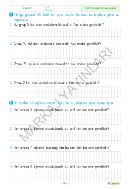 1. Bu grup 5 kişi alan arabalara binecektir. Kaç araba gereklidir?
