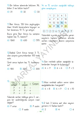 10. Bir bölme işleminde bölünen 96, 14 ve 15. soruları aşağıdaki tabloya