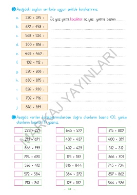 B Aşağıdaki sayıları sembole uygun şekilde karşılaştırınız.