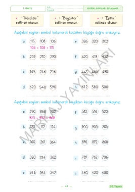 1. ÜNİTE A : : DOĞAL SAYILARI SIRALAMA