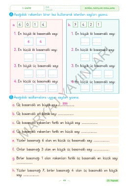A Aşağıdaki rakamları birer kez kullanarak istenilen sayıları yazınız.