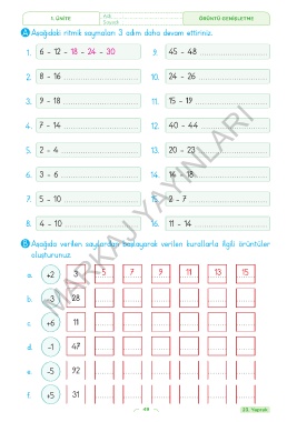 B Aşağıda verilen sayılardan başlayarak verilen kurallarla ilgili örüntüler