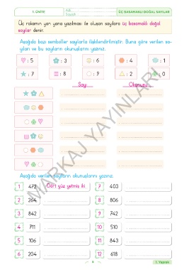 1. ÜNİTE Adıdı : : ÜÇ BASAMAKLI DOĞAL SAYILAR