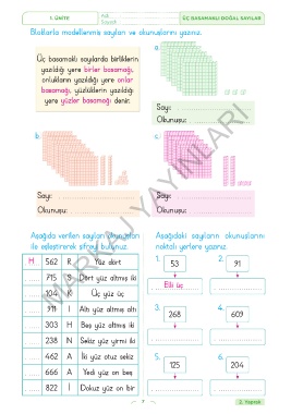 1. ÜNİTE Adı : ÜÇ BASAMAKLI DOĞAL SAYILAR