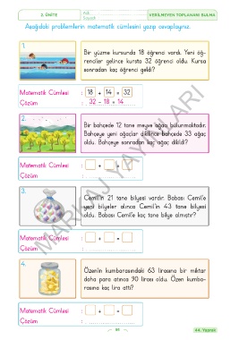 2. ÜNİTE Adı : VERİLMEYEN TOPLANANI BULMA