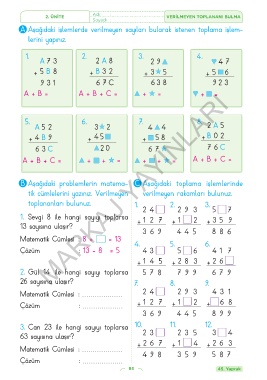2. ÜNİTE Adı : VERİLMEYEN TOPLANANI BULMA