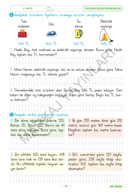 2. ÜNİTE A : : TOPLAMA İŞLEMİ PROBLEMLERİ