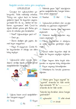 1. Uykusuzluk çeken çocuğa arka- A) Diğer hayvan daha büyük oldu-