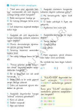 1. “Hadi ama çıkar ağzındaki bak- 5. Aşağıdaki cümlelerin hangisinde