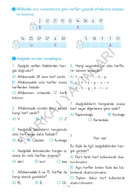 A) Alfabemizde 28 tane harf vardır. A) f - ş - t - ı - k - p