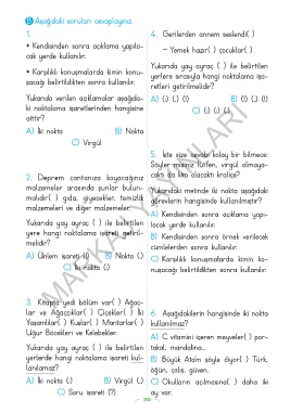 A) Ünlem işareti (!) B) Nokta (.) C) Karşılıklı konuşmalarda kimin ko-
