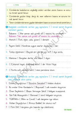 B Aşağıdaki cümlelerde verilen yay ayraçlara ( ) tırnak işareti koyarak
