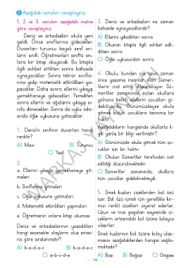 geldi. Önce sınıflarına gidecekler. B) Okunan kitapla ilgili sohbet edil-