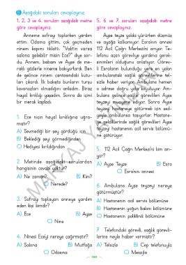 2. Metinde aşağıdaki sorulardan A) Ayşe Teyze B) Esra