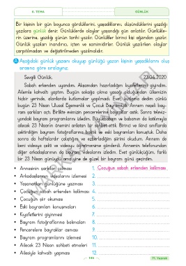A Aşağıdaki günlük yazısını okuyup günlüğü yazan kişinin yaşadıklarını oluş