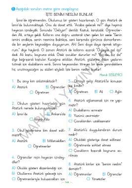 3. Okul gösterisine kim davet edil- 7. Atatürk’ü duygulandıran durum