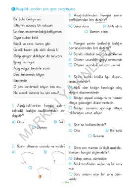 2. Şairin oltasının ucunda ne vardır? 7. Şiirin son mısrası ile ilgili aşağıda-