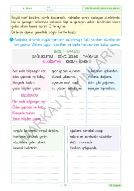 A Aşağıdaki şiirlerde büyük harflerin kullanımıyla ilgili hataları düzeltip şiir-