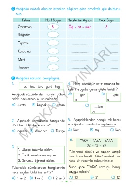 2. Aşağıdaki sözcüklerin hangisinde 5. Aşağıdakilerden hangisi tek heceli