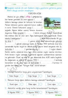 1. Metinde Atatürk’ün hangi yönü vurgulanmıştır? İşaretleyiniz.