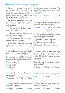 da 4 mevsim vardır. Her mevsimde 5. Aşağıdakilerden hangisi diğer ay-