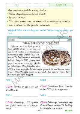 A Aşağıdaki haber metnini okuyunuz. Verilen cevaplara uygun sorular ya-