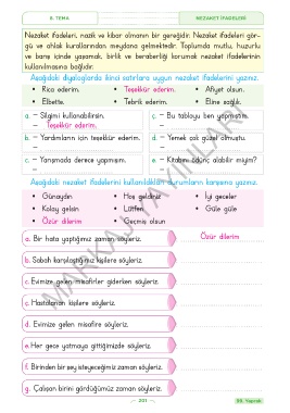 B Aşağıdaki nezaket ifadelerini kullanıldıkları durumların karşısına yazınız.