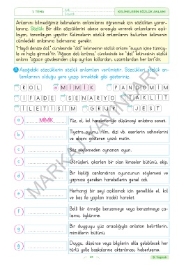 1. TEMA Adı : KELİMELERİN SÖZLÜK ANLAMI