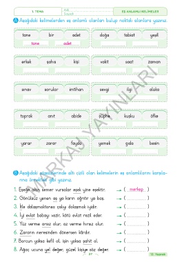A Aşağıdaki kelimelerden eş anlamlı olanları bulup noktalı alanlara yazınız.