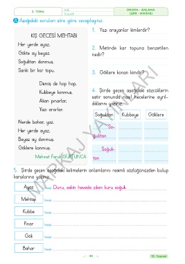 A Aşağıdaki soruları şiire göre cevaplayınız.