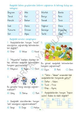 C Aşağıdaki kelime gruplarından birbirini çağrıştıran iki kelimeyi bulup işa-