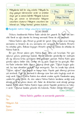unsurlarını oluşturur. Hikâyenin unsurlarını be- 3. Yer 4. Zaman