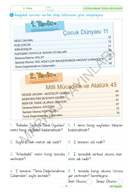 3. "Arkadaşlık” metni hangi temada 7. 2. temadaki serbest okuma met-